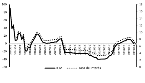 La construcción del ICM busca establecer una lectura apropiada de la eficacia de la tasa de interés y el tipo de cambio en la postura monetaria. Establecer la interacción de la tasa de interés y el tipo de cambio en la determinación de la postura monetaria posibilita incluir dos de los canales de transmisión más relevantes en economías con régimen de objetivos de inflación, evaluando su eficacia en la transmisión de los cambios en la política. Tomando en cuenta la influencia de sus componentes y el papel de las expectativas en la inflación, el ICM delinea los perfiles generales restrictivos y expansivos en el periodo 2001- 2019. No obstante, esto no significa el desdén de la interacción de todos los demás factores de influencia en las condiciones monetarias. Tampoco de los contextos económicos coyunturales con alta incertidumbre o la aplicación no convencional de políticas monetarias. Se reconocen estos aspectos de la política económica, pero el ICM no suscribe sus efectos.