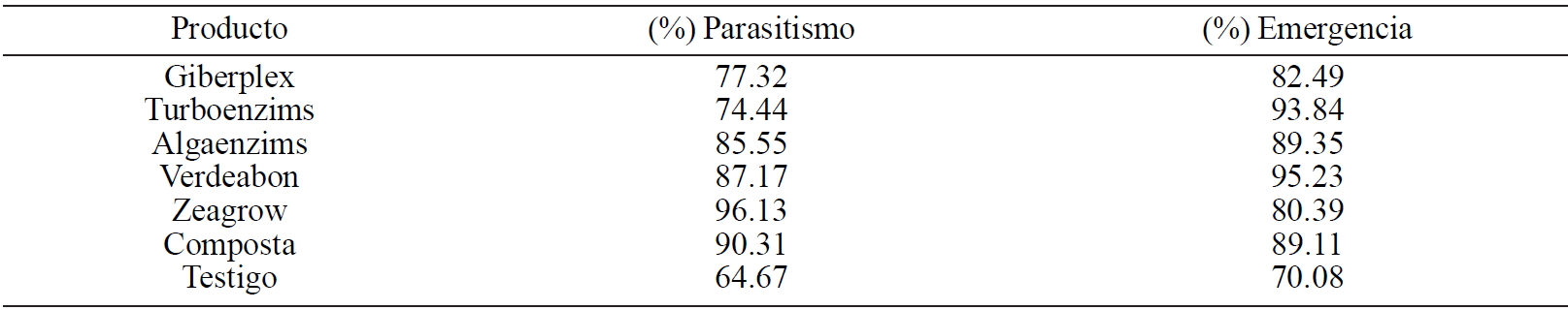 Predation levels, the use of insecticides, poor hibernation or inherent biological aspects of parasitoid that occurs naturally may be responsible for the different rates of parasitism of Florida and Puerto Rico compared with those obtained in the present study in greenhouses the CNRCB.