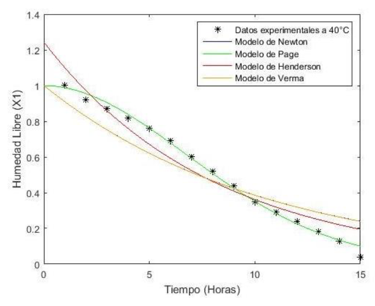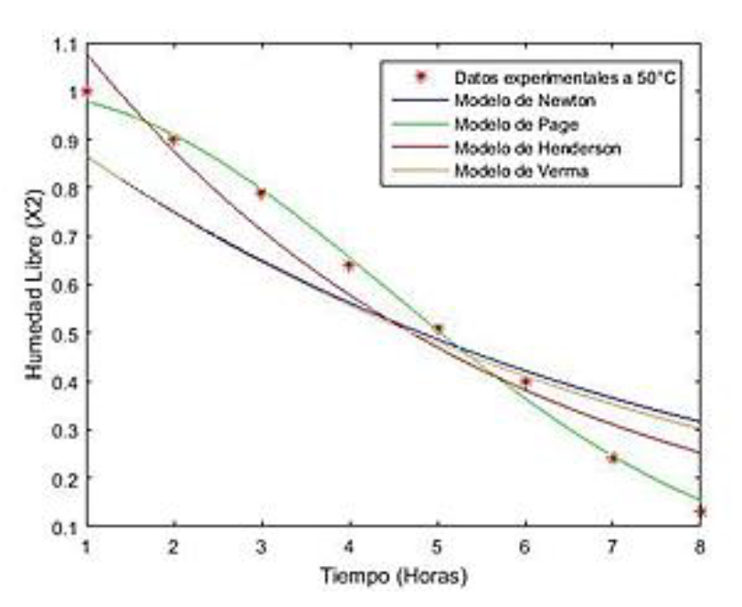 For modeling the kinetics of Moringa oleifera, mathematical models were adjusted to the experimental data, being those of Newton, Page, Henderson and Verma (Table 1) the ones selected since they are the ones that most characterize the kinetics of drying of nutrimental plants and medicinal products (Correa et al., 2007).