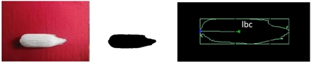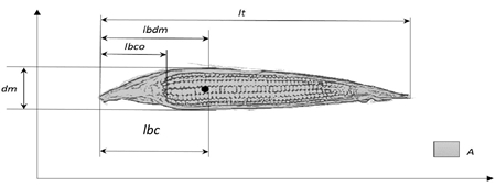 Each image was processed with Visual C 2010 and OpenCV 249 software to determine the area in pixels. The area was included as a parameter to be evaluated with the variable A. The centroid was located using the OpenCV Moment routine, then the location of the midpoint of the tangent side to the base was programmed, from which the variable of the distance from the base to the centroid (lbc) (Figure 2).