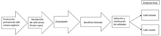 Figure 1 Coffee transformation process. Elaboration with information from the Cooperativa Campesinos en la Lucha Agraria, SC of RL of CV.