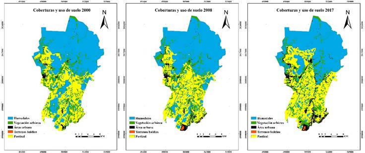 Because of this, it is necessary to use the geomatic models of land use change with a GIS platform to know the current spatial configuration of natural covers and artificial uses in order to provide accurate and up-to-date information on spatial dynamics for territorial ecological planning. The objective of this paper was to model changes in cover and use of land in the municipality of Nacajuca, Tabasco, Mexico (2000, 2008 and 2017), through a multitemporal analysis using the Land Change Modeler for ecological sustainability of the IDRISI program (Eastman and Toledano, 2018).