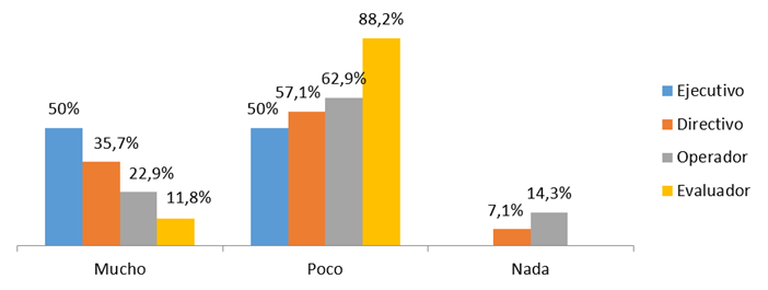 On the other hand, in relation to the usefulness of the results of the evaluations, it was found that, although the various actors consider that the use of said results is little or nothing, they perceive, for the most part, that the information is useful and very useful which is derived from the evaluations of the programs for decision-making in their improvement (Figure 3).