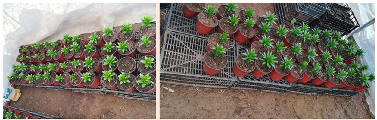 The pots of Lilium sp. were in a semi-controlled environment with a shade mesh of intensity 80:20. As part of the agronomic management, the producers disinfected the lily bulb with preventive fungicides to avoid rotting caused by the phytopathogenic fungi Fusarium spp. (Hypocreales: Nectriaceae), Pythium spp. (Pythiales: Pythiaceae) and Phytophthora spp. (Pythiales: Pythiaceae).