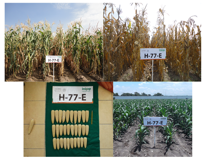 En el año 2023, fue inscrito ante el Catálogo Nacional de Variedades de Vegetales (CNVV), dependiente del Servicio Nacional de Inspección y Certificación de Semillas (SNICS), el híbrido de maíz H-77 (Figura 1) con el número de registro: MAZ-2513-150623 y con número de título de obtentor: 2393.
