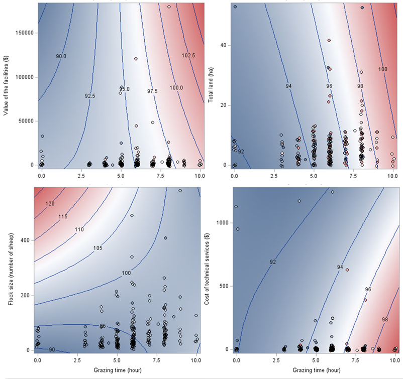 Figure 2 Contour fit for percentage of sheep grazing with changes in observations of the variables of means of production
