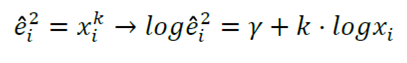 , as the dependent variable in the potential model of variance of the error (Park, 1966; Harvey, 1976), and by testing different combinations of variables and exponents, in order to optimize the result of the linear adjustment derived from taking logarithms in the following expression: