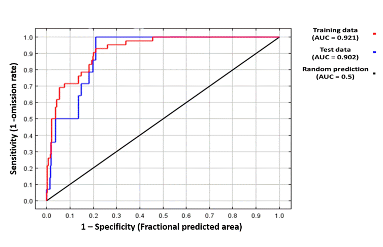 The model is satisfactory according to the training and test data set (Figure 3), since fit values of 0.921 and 0.902, respectively, were obtained; this implies that the closer the curves are placed, the smaller the error of omission is, and the more appropriate the fit (Elith et al., 2006; Phillips, 2006). The work of Yi et al. (2016) cites AUC values of 0.899 for training and 0.840 for testing in Homonoia riparia Lour., a riparian species.