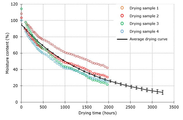 Drying curve for evaluating the solar drying of culms