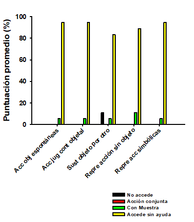 El análisis de resultados de la ejecución de las acciones objetales se realizó por medio de los porcentajes de ejecuciones de las 6 tareas del protocolo de evaluación elaborado con este propósito.
