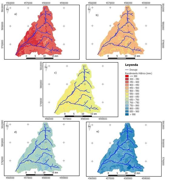 Tabla 2 Resultados del módulo WY para los cinco escenarios de precipitación.