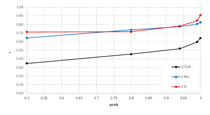 En el resto de las probabilidades y tipos de sistemas (STNC y STC), la intensidad máxima ocurre después de la mitad de duración de la tormenta y por tanto los sistemas son de tipo retardado debido a que r > 0.5.