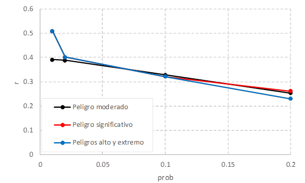 Son de tipo avanzado para los distintos tipos de peligro establecidos (moderado, significativo, alto y extremo), en el rango de probabilidades de 0.01 a 0.2.