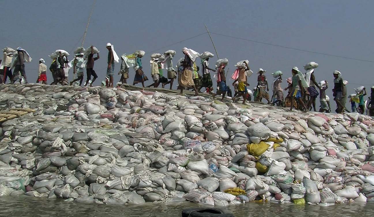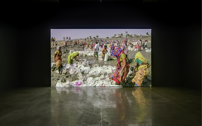 El primer video muestra las zonas de las arenas petrolíferas en Alberta, Canadá, alteradas por la extracción del petróleo. Posteriormente, y como el aleteo de una mariposa que provoca huracanes al otro lado del mundo, nos deja observar en un segundo video a una población que trabaja sin parar para detener el mar y evitar que invada las tierras de cultivo en Bangladesh, en el delta del Ganges, India.