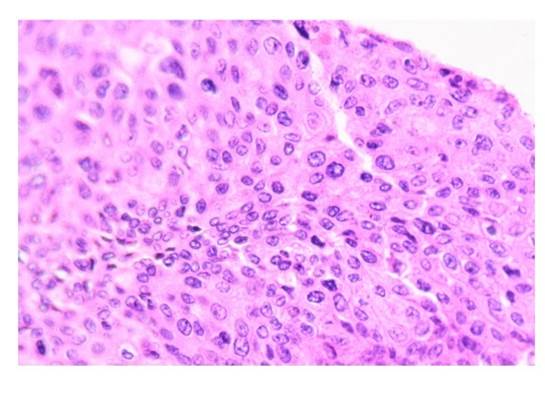 La imagen demuestra carcinoma urotelial de tipo papilar.