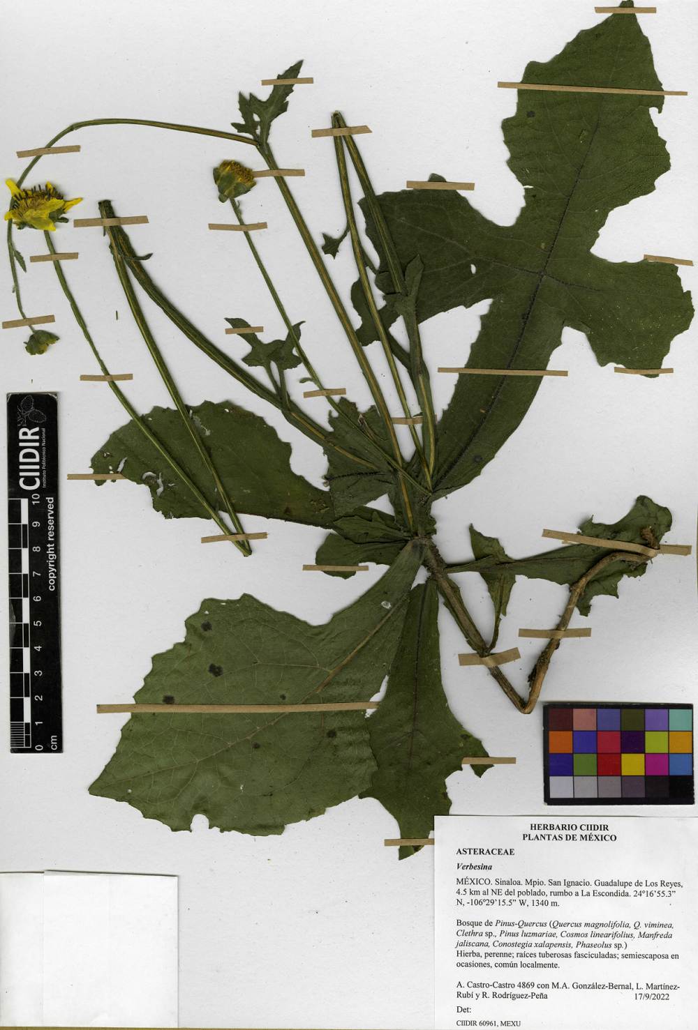 En la Sierra Madre Occidental (SMOC), Colin-Nolasco (2017) reportó 37 spp. nativas de Verbesina, 14 de ellas endémicas. Además, identificó dos centros de riqueza: uno al norte de Durango en los municipios de Topia, Canelas y Santiago Papasquiaro; y otro en la colindancia de Aguascalientes, Durango, Jalisco, Nayarit y Zacatecas.