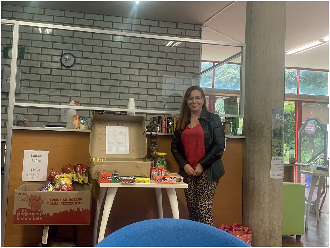 Para tener quién vendiera por la tarde, invitó a la encargada de servicios que atiende la biblioteca en el turno vespertino para que participara en el negocio. Ella podía comercializar productos diferentes, que no le hicieran competencia, y así ambas ganaban. La segunda incorporó las sopas instantáneas, agua embotellada, leche de sabores de un cuartito, dulces a granel que ella empaqueta en bolsas de plástico y jugos de fruta envasados. Ambas mujeres son madres separadas que tienen niños a su cargo: Sol, la jefa de la biblioteca, es madre de un niño, el emprendedor ya mencionado, y Ale, de una niña de 6 años, por lo que el ingreso extra les cae de maravilla. Esta red de apoyo ha funcionado muy bien hasta la fecha (12 de mayo de 2024), aunque no se sabe cuánto durará. A pesar de algunas llamadas de atención, aún sigue funcionando.