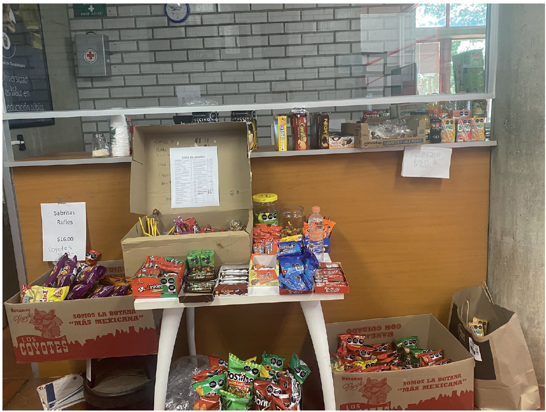 La venta de golosinas en los salones ha existido desde siempre, la mayor parte del tiempo de forma clandestina. Cuando empiezan a proliferar de forma más abierta, las autoridades llaman la atención y vuelven a encerrar todo en las mochilas para vender y consumir de forma discreta. Incluso, la administración de Mara Robles entre 2016 y 2018 intentó hacer un centro universitario en el que se consumiera solamente comida saludable y nutritiva, disposición que resultaba algo difícil e impositiva, primero, porque la comida sana cuesta más y los estudiantes no cuentan con dinero suficiente para pagar sus alimentos en el comedor del campus, y segundo, porque en el gusto de las personas está muy arraigada la cultura de comer alimentos chatarra, por lo que la mayoría de estudiantes y algunos trabajadores salían a comprar sus antojos a tienditas que estaban relativamente cerca del centro, pero fuera de su perímetro.