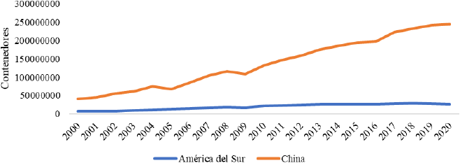 Figura 13 Transporte de contenedores de China y América del Sur en el siglo XXI
