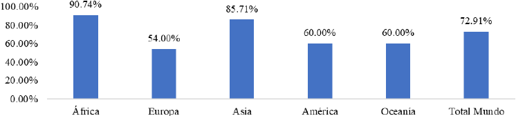 En el análisis por continente, resulta destacable que más del 90 % de los países africanos ya participan en el macroproyecto, mientras que un poco más del 85 % de los países asiáticos también forman parte de él, como se observa en la Figura 6. Estos datos hablan por sí mismos acerca de la significativa importancia que los países otorgan a este proyecto, subrayando la influencia de las inversiones realizadas por el gigante chino en estas regiones.