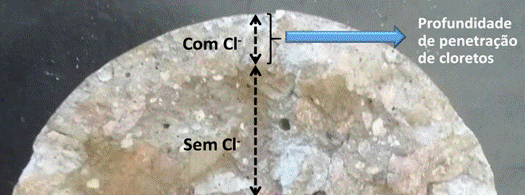 Dentro deste contexto, a penetração de cloretos nas estruturas de concreto é uma possível causa de corrosão de armaduras, sendo importante para trabalhos de inspeção e diagnóstico do concreto armado o conhecimento da profundidade de penetração deste íon agressivo.