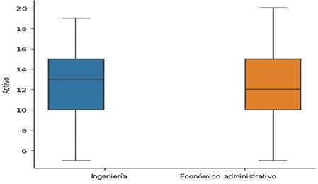 | Económico-Administrativa | Activo | 71 | 12.9155 | 3.71770 |