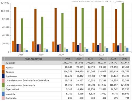 *Nota: El gráfico ilustra el nivel académico del personal de enfermería en México al año 2024. Datos extraídos de SIARHE por la Dirección de Calidad y Educación en Salud. Gobierno de México.