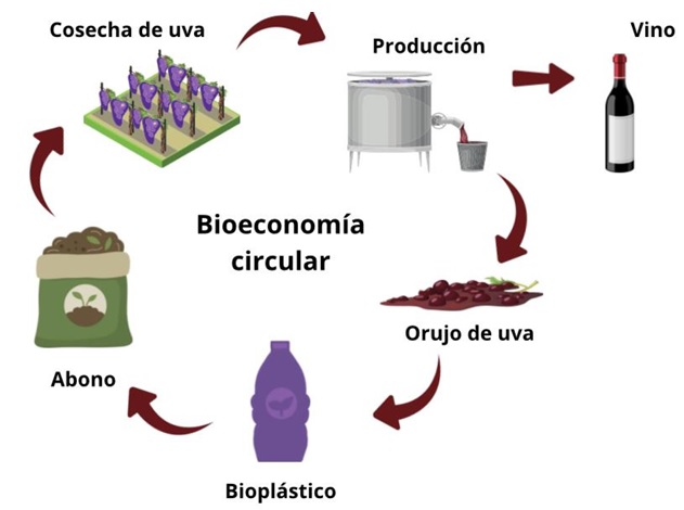El orujo de uva, un importante residuo agroindustrial tanto a nivel mundial como nacional, posee compuestos valiosos con el potencial de producir bioplásticos. En este artículo se presenta una perspectiva general sobre el potencial de valorización del orujo de uva desde la bioeconomía circular, para poder ser aplicada a la producción de bioplásticos con el objetivo de reducir la generación de residuos y mitigar la producción y el impacto de los contaminantes plásticos. Sin embargo, aún es necesario establecer estrategias que permitan la recuperación e integración del total de los subproductos para confirmar la rentabilidad y sustentabilidad de los procesos productivos de dichas cadenas de valor.