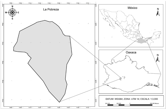 El área experimental fue un rodal de 20 ha con regeneración natural de Pinus pseudostrobus Lindl. posterior a un incendio en 2008; se ubica en el paraje “La Pobreza” en San Pedro el Alto, Zimatlán, Oaxaca a 16° 80´ 83.33 LN y -097° 05´ 33.3” LO y altitud de 2 800 m, en clima templado sub-húmedo, con lluvias en verano y temperatura media anual de 18°C. El rodal joven se compone de arbolado de 12 a 15 años de edad en etapa latizal (Figura 1).