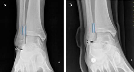 Al encontrar una constante en nuestra población en tobillos sanos y tomando como base las mediciones obtenidas, es posible determinar la severidad de la lesión de la sindesmosis tibioperonea y definir la necesidad de tratamiento quirúrgico.