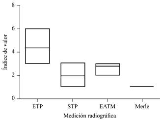 Tabla 1: Resultado de mediciones radiográficas realizadas. N = 46