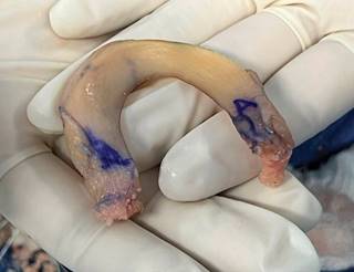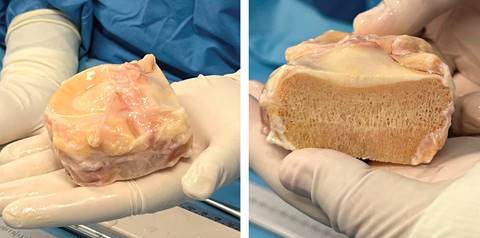 Figura 5: Aloinjerto de plataforma tibial lateral para preparación y extracción del menisco que se implantará vía artroscópica en el paciente.