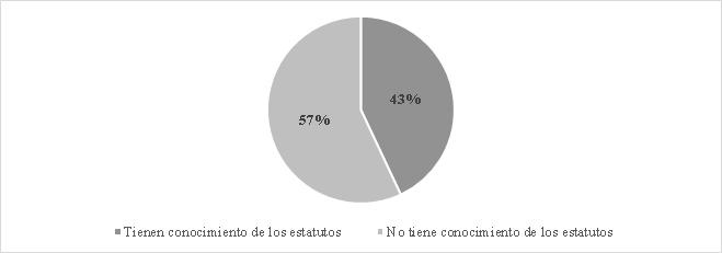 De acuerdo con la revisión teórica, en el Departamento de Cundinamarca, más del 57% de los presidentes de las juntas de acción comunal no tienen conocimiento de la misión, visión y objetivos de cada una de las organizaciones comunales, es decir de conformidad con los estatutos de cada una de las juntas de acción comunal, donde aseguran que tienen poco reconocimiento de la conformación de las juntas (gráfico 1).