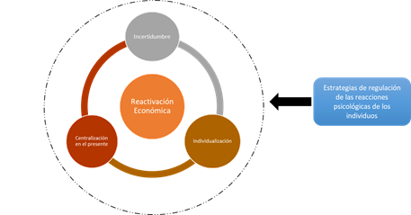 De igual modo, como lo han expresado Hoh y Mee (2020), la individualización, considerada como elemento conductual, afecta negativamente el proceso de reactivación económica, ya que el individuo tiende a buscar el beneficio propio sin importar la incidencia que sus decisiones económicas y comportamentales tengan en la sociedad. Desde esta perspectiva, las personas que tengan mayor poder adquisitivo y estabilidad financiera buscan abastecerse de forma descontrolada, lo que genera una escasez de productos de primera necesidad (Stanciu, et al, 2020). Los elementos conductuales y su relación con las estrategias de regulación se grafican en la figura 1.