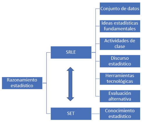 El RE es considerado como un nivel cognitivo en el aprendizaje de la estadística (Ramos, 2019). Para su desarrollo es indispensable implicarse en el proceso de enseñanza y aprendizaje de esta disciplina, abordando las IEF (Estrella, 2017). Además, debe propiciarse un ambiente de investigación donde el estudiante tenga la oportunidad de pensar y reflexionar sobre su aprendizaje, así como discutir y reflexionar la información estadística con sus coetáneos. En este sentido, pueden ponerse en juego los elementos que propone Ben-Zvi (2011) en el modelo denominado Ambiente de Aprendizaje de Razonamiento Estadístico (Statistical Reasoning Learning Enviroment [SRLE]), a través de los seis principios pedagógicos que lo componen: