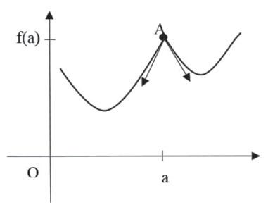 Figure 1 Graphique d’une fonction f continue avec un point anguleux indiquant une non dérivabilité en a.