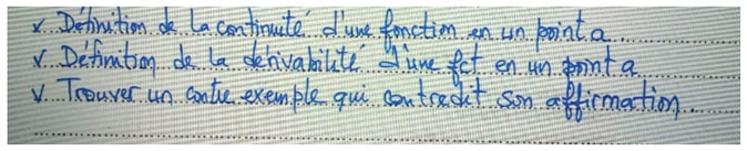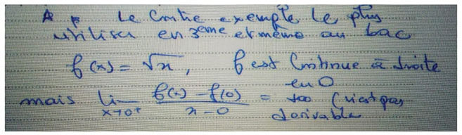 Il convient de noter qu’un autre enseignant a fourni la réponse suivante : « contre-exemple14 Définition de la dérivabilité, Dérivabilité à droite et dérivabilité à gauche ». À notre avis, cette réponse est si vague et imprécise qu'il nous a été difficile de la considérer comme une réfutation.