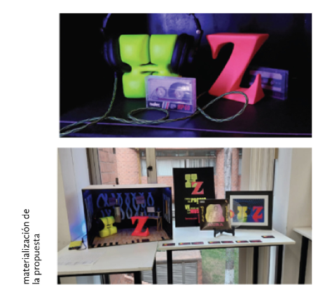 En el último taller se expone la realización de las iniciales de cada estudiante, además de que se incluyen enseñanzas de imagen digital y se genera un escenario para estos elementos, integrándose el sentido del oído. En este caso sólo se presenta la propuesta final. De acuerdo con Horacio, el proyecto le resultó “Complejo, pero con mucha libertad creativa que me permitió plasmar mis ideas a físico.” (Gómez, 2023, s. p.).