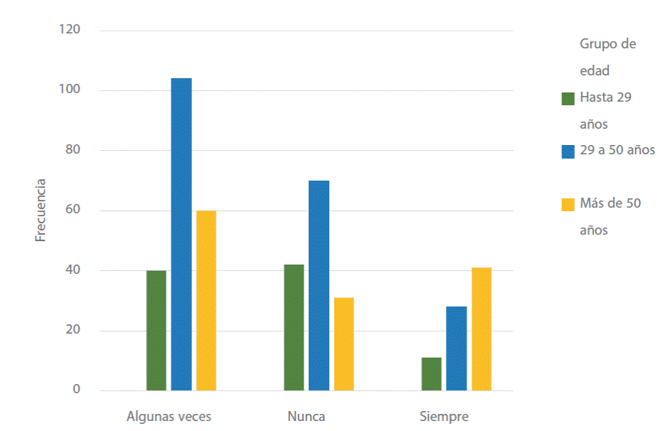 Figura 6 Frecuencia reportada respecto a conocer nuevas personas por grupo de edad
