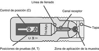 Figura 1: Diagrama de dispositivos ZAP. C = control. M = mioglobina. T = troponina. Modificada de: Gahp Pharma. Diagrama dispositivo ZAP. Disponible en https://gahppharma.com/#demo