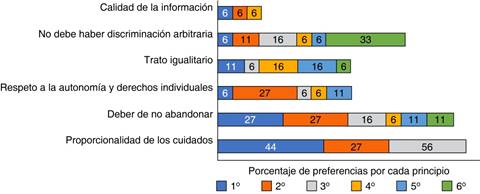Esta categoría se refiere a aquellos principios que el personal a cargo de la asignación de recursos ha tenido que poner en práctica durante la pandemia por COVID-19, los participantes organizaron los principios según la importancia que ellos consideraron que cada uno tiene durante el proceso de triaje (Figura 1).
