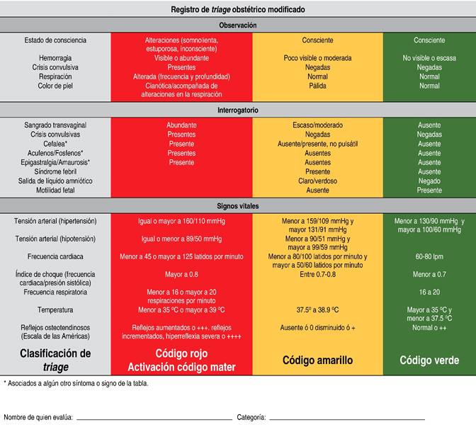 El triage es un sistema o escala de puntuación o de código por colores desarrollado para priorizar la atención del paciente en el área de urgencias de acuerdo a su gravedad y estado agudo de la patología permitiendo optimizar recursos hospitalarios y preservar la vida.10 Estableciéndose el primer modelo para pacientes obstétricas en el año 1999 en Canadá, mismo modelo que se lleva en México, como parte de las estrategias para disminuir las muertes maternas, valora diferentes signos y síntomas, pero no incluye la exploración de los reflejos osteotendinosos profundos (ROTSP).11-14 Es por eso que consideramos que la escala de triage obstétrico (ETO) debe ser actualizada, proponemos incluir la exploración de los reflejos osteotendinosos a la escala actual y dependiendo del estado o grado, atribuirle un color de alerta, esto con el fin de incrementar la precisión en la detección de PE con criterios de severidad y evitar que desarrolle complicaciones o muerte.