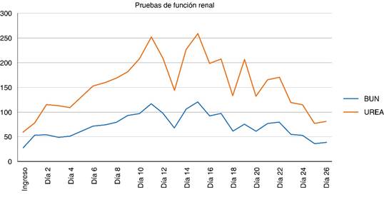 En la presentación de este caso clínico uno de los factores extenuantes y que volvían tórpida de forma inicial la evolución clínica fue la presencia de lesión renal aguda desarrollada durante su hospitalización, además del trasplante renal 11 años atrás y el uso de inmunosupresor como mantenimiento antirrechazo, por lo que durante su estancia hospitalaria se realizaron sesiones de hemodiálisis, evitando así el fracaso renal.