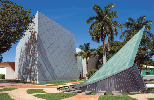 Las líneas de diseño propuestas en las intervenciones realizadas en la segunda década del siglo XXI son diversas y algunas se distinguen por ser grandilocuentes, desarrollando varios componentes con características escultóricas, incluyendo los edificios, dentro de los cuales destaca una escultura geometrista como en el acceso principal en la plaza de mayor escala que funciona como vestíbulo de la torre de Rectoría. Es un elemento compuesto de dos pirámides situadas como una especie de compás que se halla articulado con dos objetos piramidales alargados y puntiagudos, materializados en cristal y mármol negro. La perspectiva que se observa es una presencia volumétrica que compite con la solemnidad cilíndrica de la torre de la Rectoría, sin ninguna relación geométrica, simbólica, compositiva o de alguna naturaleza en su diseño.