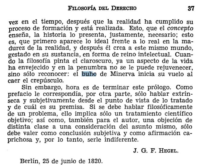 Figura 1 Traducción de la última página del prefacio de la obra “Filosofía del Derecho”, escrita por Hegel en 1820