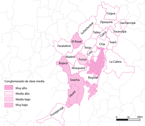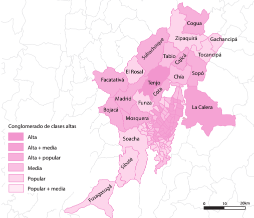 Por su parte, ese orden socioespacial es inelástico a la metropolización. Para las clases populares escasean las alternativas de satisfacción de sus demandas residenciales, y las satisfacen en los mercados informales de las jurisdicciones del sur, mientras que profesionales de ingresos medios encuentran que las soluciones residenciales que se encuentran en las jurisdicciones de occidente son más compatibles con sus intenciones de localización que las que se ofrecen en Bogotá. Por último, las clases altas encuentran en los vecindarios suburbanos del norte y el nororiente los entornos propicios para autosegregarse.