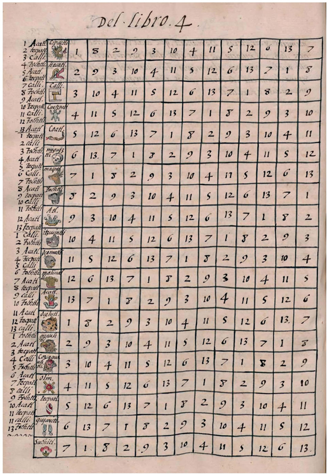 Basta con una justificación matemática para entender lo que relaciona al tonalpohualli, “cuenta de los días”, con el xiuhtlapohualli, “cuenta de los años”: