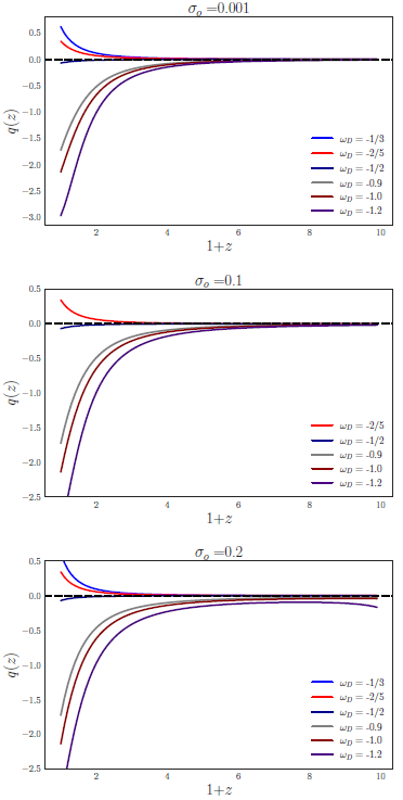 Figure 5 shows the deceleration parameter as a function of redshift for different values of ω D and σ o (from top to bottom).