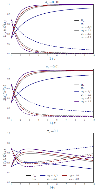 Ωm(z)=Ωm,o(1+z)3-8πGnoσ-o3Ho3(1+z)3ln(1+z),ΩD(z)=(ΩD,o+8πGnoσ-o9Ho3ωD)(1+z)3(1+ωD)-8πGnoσ-o9Ho3ωD(1+z)3.