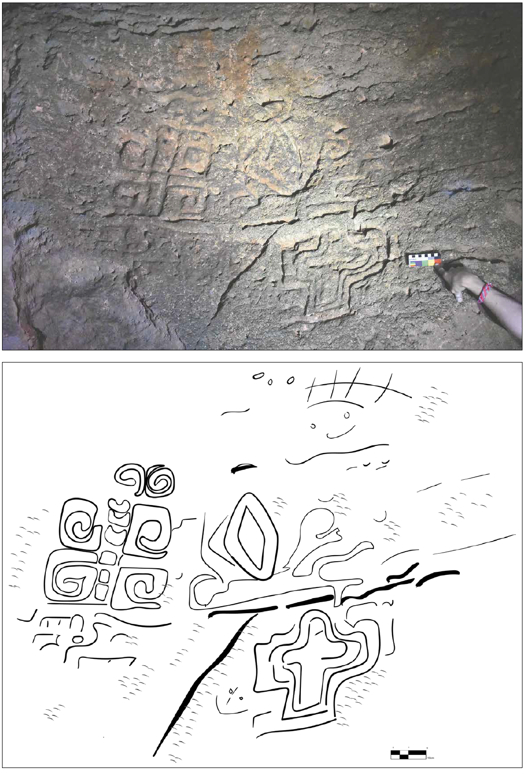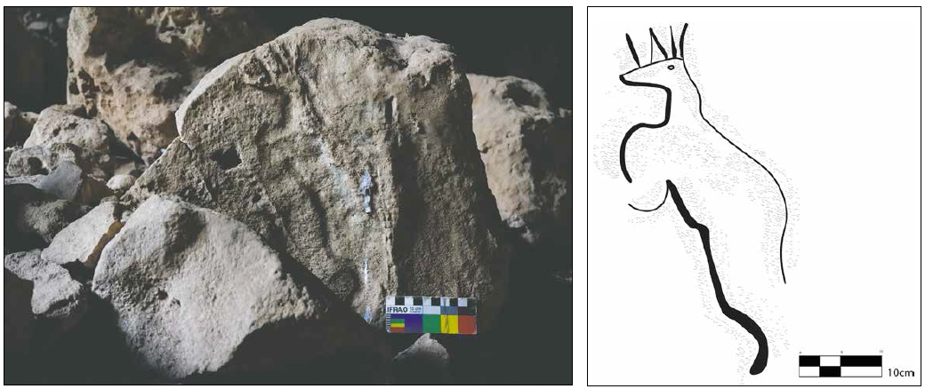 Figura 9 Grabado 2 en roca exenta de la primera cámara. Aktun Usil, Maxcanú, Yucatán
